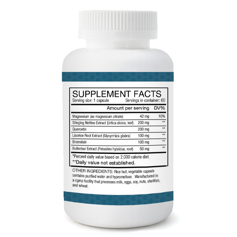 Butterbur extract supports the body's response to seasonal allergies.  Butterbur has shown anti-inflammatory benefits in some animal model studies.